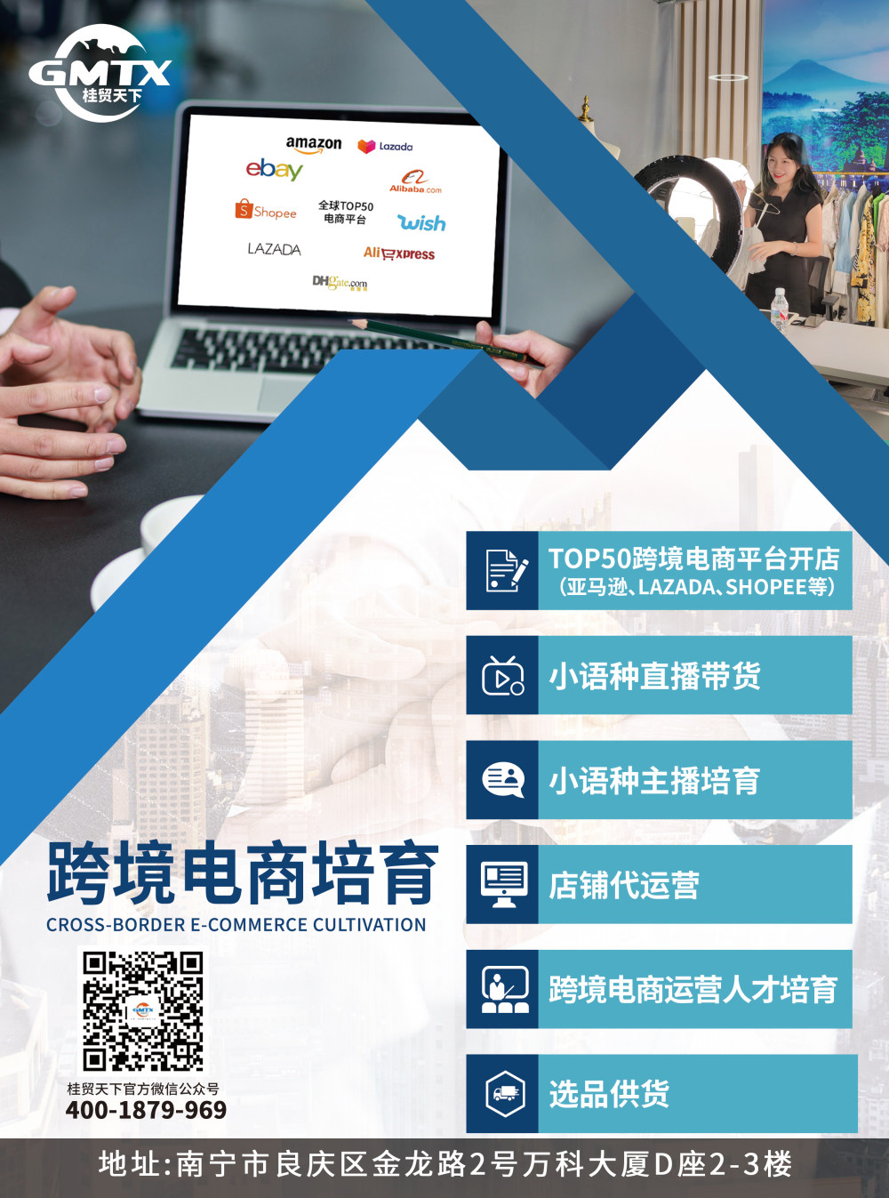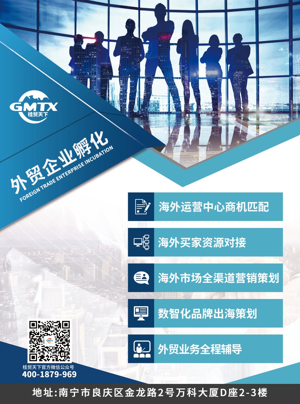 广西桂贸天下企业管理服务有限公司成立于2016年5月20日,总部位于中国(广西)自由贸易试验区南宁片区金龙路2号万科大厦D座,是国内首家集“新外贸”企业孵化、“一站式”外贸综合服务为一体的综合型外贸服务公司。2016年被广西壮族自治区商务厅等部门认定为“广西首批外贸综合服务试点企业”, 2020年5月,在自治区商务厅、中国(广西)自由贸易试验区南宁片区管委会、南宁市商务局的指导下,设立广西新外贸孵化基地;2020年10月,设立广西跨境电商培育基地。 公司以丰富的外贸经验为基础,结合广西外贸发展实际,总结出一套适合当前区内外企业出口服务方案,以创新的“互联网+新外贸”为核心服务模式,以推动区内跨境电商快速发展为己任,全面助力广西“千企开拓”工程实施。 2020年,公司进出口总额2.25亿美元,服务入驻基地孵化企业达75家,并为区内300多家企业提供了外贸综合服务。