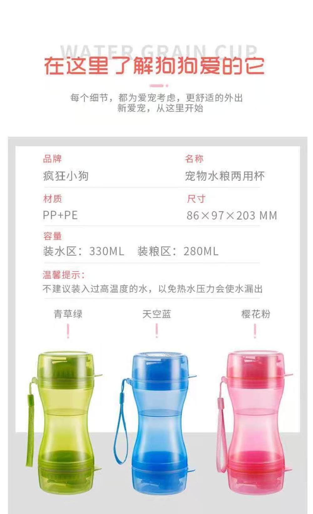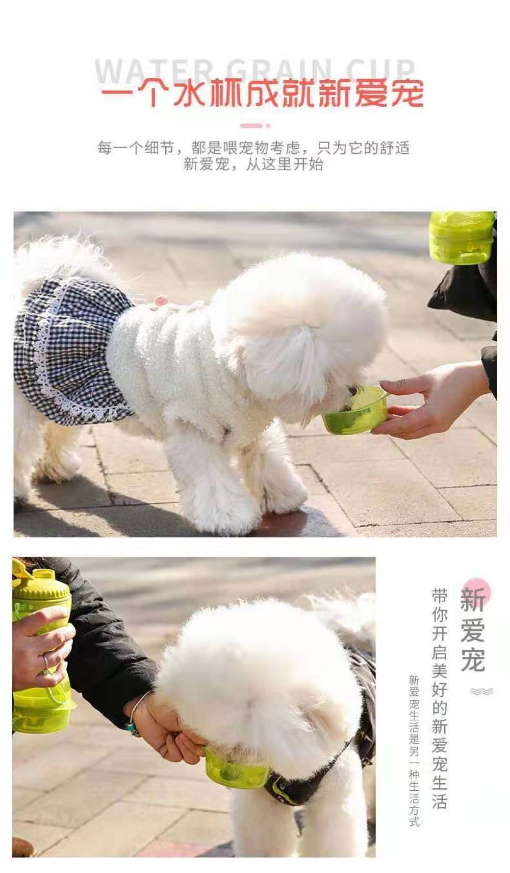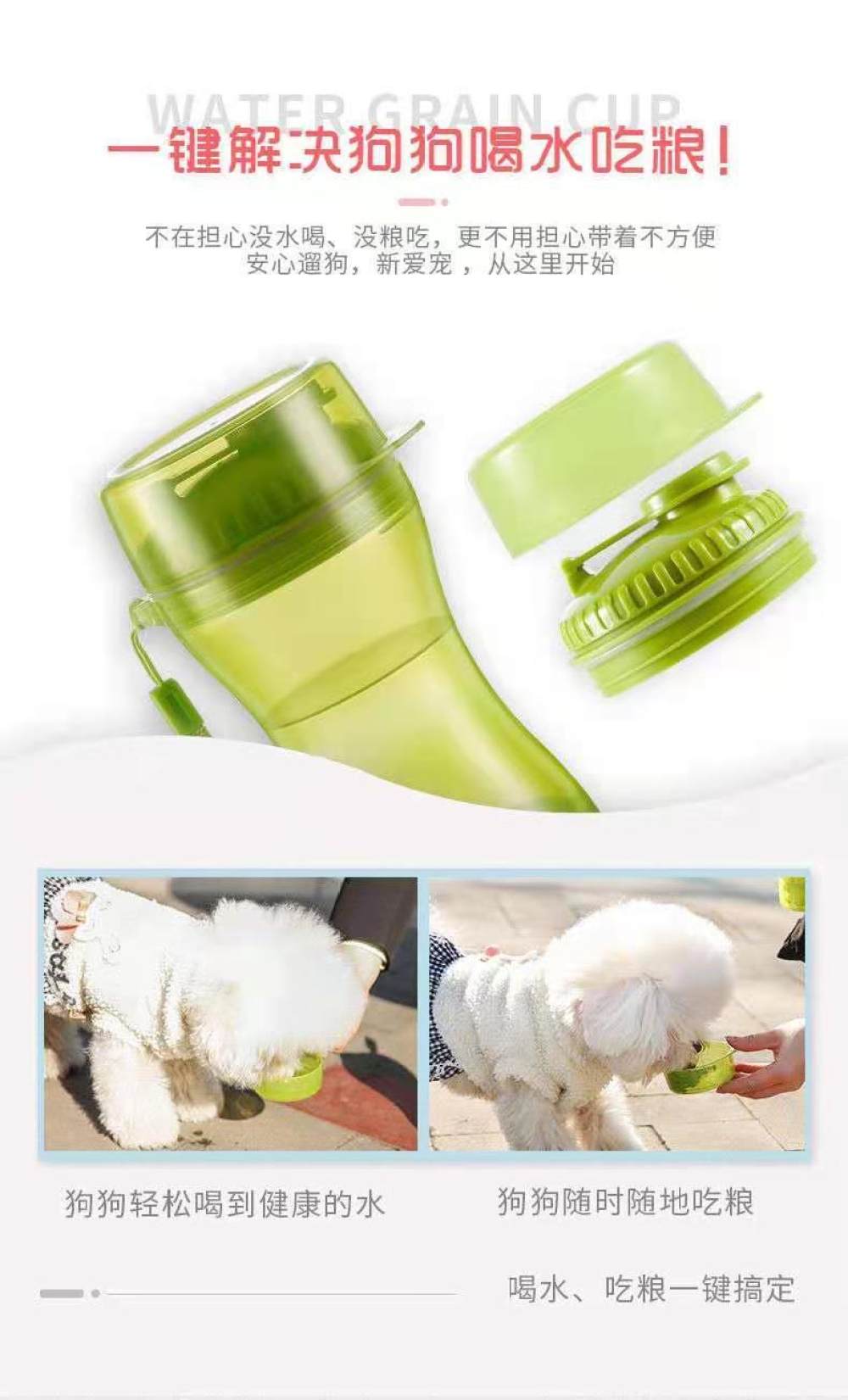 您正在咨询 多功能两用水粮杯宠物狗外出水壶狗碗狗狗随行水杯便携式户外喂食